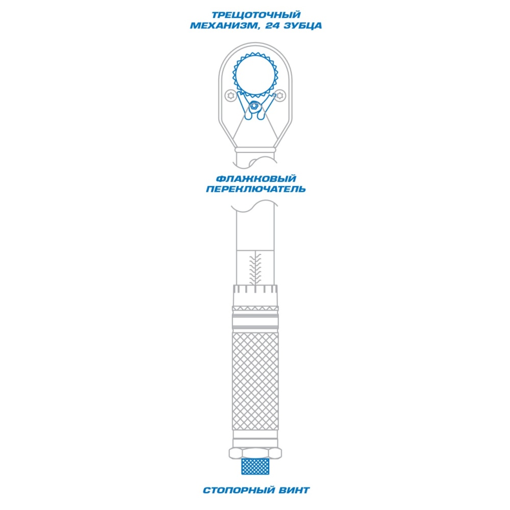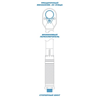● Трещоточный механизм и флажковый тип переключателя реверса позволяют работать как вправо, так и влево.