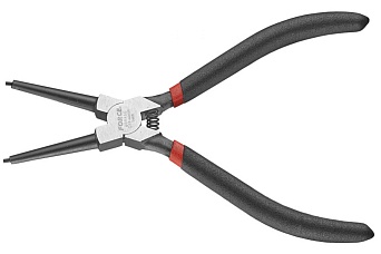 Сжимы стопорных колец используют в автосервисах и ремонтных мастерских для быстрого демонтажа стопорных колец. Изделие находит широкое применение во время диагностики и обслуживания транспортных средств.Модель изготовлена из прочного металла. Благодаря противоскользящим накладкам-чехлам инструмент удобно держать в руке.