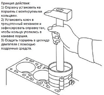Простая и удобная в применении модель, которая позволяет производить монтаж поршневых колец в цилиндре. Используется автомеханиками при ремонте автотранспорта. Приспособление имеет небольшие размеры и малый вес, поэтому его легко транспортировать и удобно хранить.Характеристики