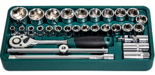 Головки торцевые 1/2", 24 штуки: 8, 9, 10, 11, 12, 13, 14, 15, 16, 17, 18, 19, 20, 21, 22, 23, 24, 25, 26, 27, 28, 30, 32, 34мм