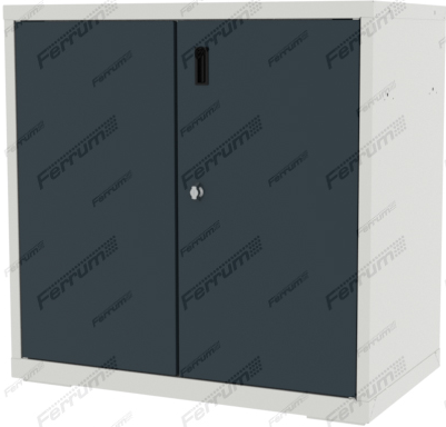 Двери распашные с пластиковой ручкой.