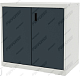 Двери распашные с пластиковой ручкой.